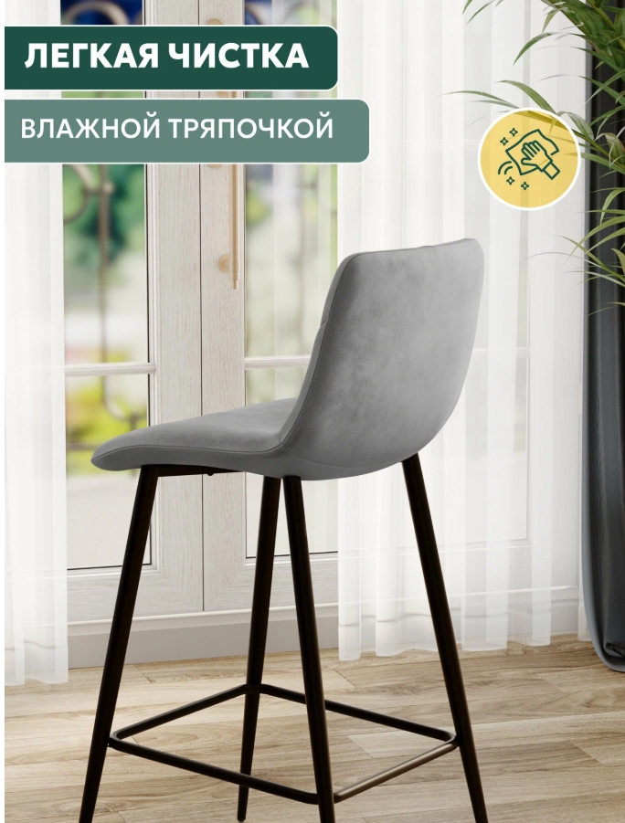 Наш полу барный Стул имеет трапециевидную форму, что придает ему современный и модный вид. Мягкое сиденье и мягкая спинка обеспечивают максимальный комфорт при использовании. Обивка выполнена из велюра, который приятен на ощупь и легко чистится.